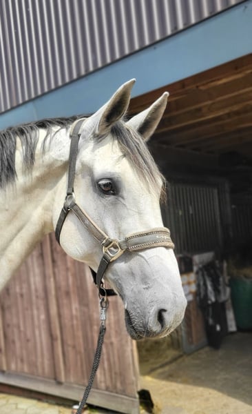 Con gran pesar, vendo a mi hermosa y grisalla yegua como yegua de cría (aún no ha tenido cría) debido a episodios recurrentes de cojera ligera y, recientemente, al diagnóstico de adherencias e inflamación en la bolsa del menisco del casco. Esto será tratado, pero probablemente nunca podrá volver a ser completamente apta para la equitación deportiva. Mide 1,80 m de altura. Ha competido con éxito en salto hasta nivel L. Excelente disposición para el salto y muy buena técnica, con una elegante manera de saltar. Año de nacimiento: 2016. Para consultas, no dudes en contactar. El precio es negociable.