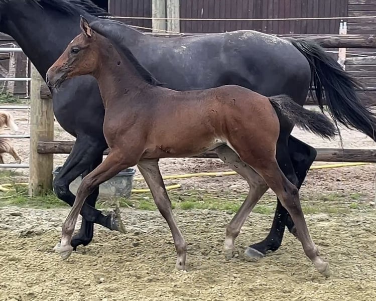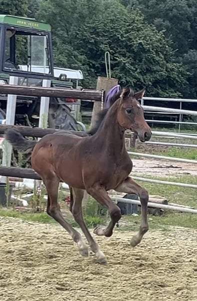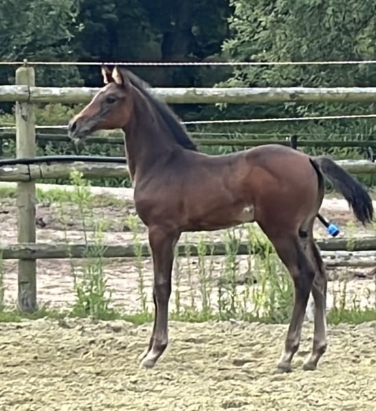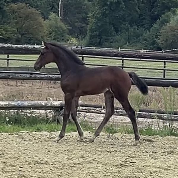 Erst am 21.06.25 geboren ist Corali ein auf gutem Fundament stehende junge Stute. Mit einem Hintern wie ein Quaterhorse ausgestattet wird es ihr an Kraft nicht fehlen. Ihr Vater Cote d‘Or Z selber erfolgreich über 1,55m gesprungen geht es weiter mit Carambole und Diamond’s Billy beide über 1,60m usw. Mütterlich benötigt es auch nicht viel zu sagen: Diarado und Carthago, sowie die Oma Pur Lady selber haben ein Zeichen im Springsport gesetzt. Hier wächst eine hübsche und vielversprechende Stute heran.
