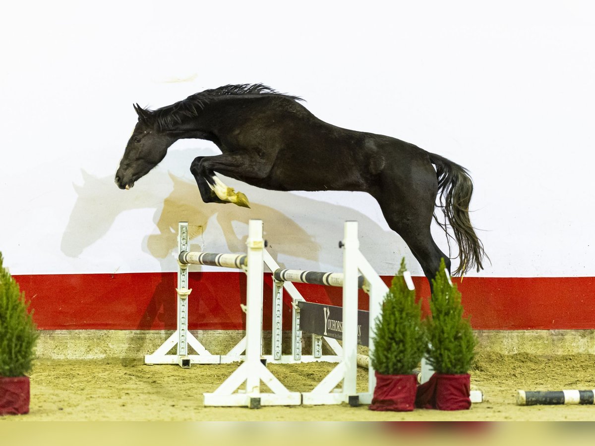 Emma Z is a striking black mare with modern expression and natural presence. In free jumping she shows technique, carefulness and scope, combined with light movement and a correct shape over the fence. Her pedigree, featuring Emerald van ’t Ruytershof and Iceman de Muze, promises athleticism, sharpness and genuine sport capability. Sire Emerald built an outstanding international career with Harrie Smolders, winning at the highest level and developing into one of the world’s most influential sires. He already produced numerous 1.65m–1.70m performers such as Igor, Jaguar van de Berghoeve, Mandato van de Neerheide and Nikka vd Bisschop. Dam Mangnifique, by 1.60m stallion Iceman de Muze, comes from a strong performance family. She is a half-sister to Gemma W (Luidam), a 1.65m–1.70m Grand Prix mare successfully ridden by Daniel Bluman. Granddam Britt W (Unaniem x Calvino Z) adds further depth to the pedigree. She is a half-sister to: Important Style VK (Falaise de Muze) – 1.50m, BWP/AES approved Floyd W (Bernini) – 1.45m two 1.30m jumpers The same dam line also produced the international Grand Prix horses: Von Dutch (Vigo d’Arsouilles) – 1.60m Dino W (Berlin) – 1.60m With her refined model, correct conformation and natural jump, Emma Z combines elegance with genuine performance potential, making her a valuable prospect for both sport and breeding.