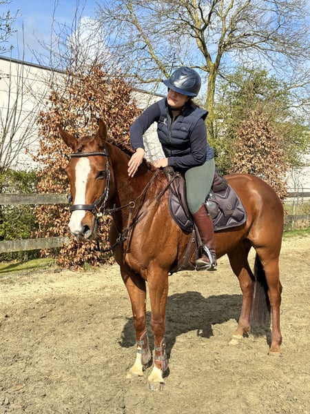 Romy is a beautiful, willing mare (born in 2020) with great potential. Her sire, Richebourg, jumps 1.60 m, and her dam's sire is also Parco. She foaled her foal in 2025 and was subsequently backed and started under saddle. She is being further trained as a promising show jumper. She would also be well-suited for eventing. We are looking for an ambitious new home with a gentle approach. She is being sold because, for the current owner, she has too much blood and potential to be a relaxed recreational horse. Please feel free to contact us for more information or videos.