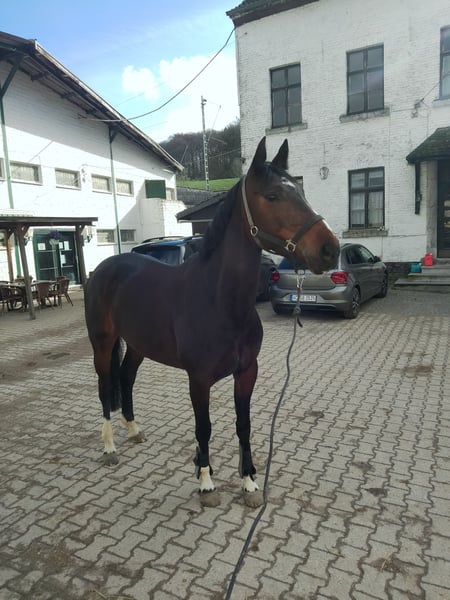 Alice ist eine selbstgezogene,schicke ,6jährige Stute,die auf ihren passenden Reiter zum Start in die Saison 2026 wartet. Sie ist bei uns in der Eifel robust aufgewachsen und schonend ausgebildet worden. Auf den ersten Trainingsturnieren in BEL und NL zeigte sie sich cool, unerschrocken und absolut klar im Kopf. Sie guckt nicht,macht es sich am Sprung auch bei Bedarf passend Sie zeigt stets eine sehr gute Manier mit Vermögen und Übersicht. Sie befinden sich altersbedingt noch im Wachstum,ist aber ein eher leichtes Pferd. Also auch optimales Damen-oder Juniorenpferd. Sie ist sehr brav im Umgang,auch im Gelände macht sie viel Spaß,kennt Wasser und kleine Baumstämme. Anschauen,probieren,verlieben. Es lohnt sich.