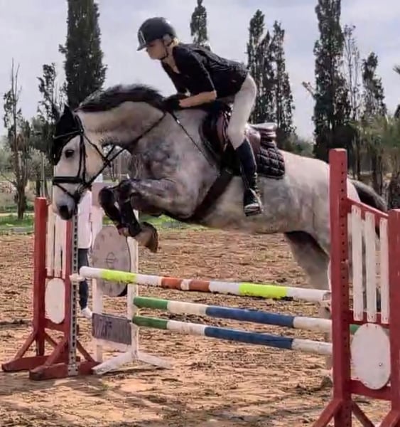 For sale is an exceptionally calm and well-trained mare. She impresses with her tranquil, clear, and very human-oriented nature. This mare is a true "handy horse," always easy to handle and completely uncomplicated in her interactions. She is clear-minded, very eager to learn, and possesses a gentle, patient temperament—never pushy, but always willing to show herself. She is very easy to ride, responsive to leg aids, and always reacts subtly to the rider’s cues. She moves very well and has a solid basic level in dressage. Recently, she successfully completed her first jumps under saddle. Currently, she is ridden by a 17-year-old girl. The mare is not only familiar with social interactions with other horses but also experienced in common everyday situations: she has no fear of cars or tractors and gets along well with dogs and children. Talou is also farrier- and loading-friendly. Additionally, she performs very well in longe work, is familiar with free jumping, and is versatile in her use. Her calm and friendly nature makes her an ideal partner for riders seeking a reliable and loving horse.