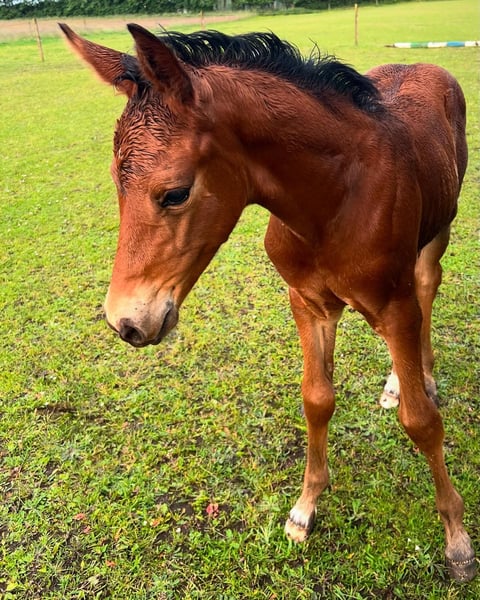 Elegant Zangersheider Mare Available for Sale Discover the exceptional quality of this stunning Zangersheider mare, born in 2025. Promising future in the sport. Smart and very intelligent horse with good movements, where especially the quality of the canter and balance should be highlighted. Appears to have the right spark for the sport. Sweet and easy to handle. The dam jumps with good quality, exceptional overview, and plenty of courage. She is approved in the main studbook, receiving, among other scores, 8.5 for canter and rideability. Unfortunately, her sporting career came to an early end due to injury For more information about Duquesa, and to arrange a viewing, please contact me.