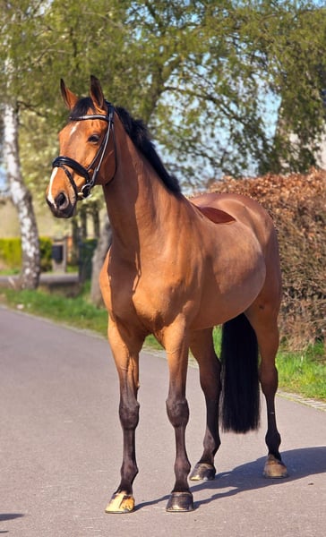 Top Talentvolle 12-jarige Ruin – Klaar voor de Top van de Sport! Met trots presenteren wij deze uitzonderlijke 12-jarige ruin, een bewezen topper met een indrukwekkend palmares in de springsport, eventing en dressuur. Dit paard is niet alleen een atleet van formaat, maar ook een betrouwbare partner met een gouden karakter en een onuitputtelijke werklust. Deze ruin heeft zijn sporen verdiend in de 1.30m springparcoursen, waar hij keer op keer zijn talent, techniek en vastberadenheid heeft getoond. Met zijn atletische vermogen, snelle reflexen en feilloze sprongtechniek is hij een serieuze concurrent voor elke ruiter die de top wil bereiken. Zijn prestaties in de 1.20m cross country bewijzen zijn veelzijdigheid en moed, waarbij hij met gemak de meest uitdagende hindernissen overwint. Naast zijn successen in de spring- en eventingsport, heeft deze ruin ook zijn potentieel in de dressuurring laten zien. Op L2-niveau toont hij een natuurlijke aanleg voor de dressuuroefeningen, met comfortabele gangen, een goede houding en een bereidwillige instelling. Zijn gehoorzaamheid en meewerkende karakter maken hem tot een ideale partner voor de ruiter die op zoek is naar een veelzijdig paard dat in meerdere disciplines kan excelleren. Wat deze ruin echt bijzonder maakt, is zijn onuitputtelijke werklust en zijn potentieel voor het hogere werk. Hij is altijd bereid om te leren en te presteren, en hij beschikt over de fysieke en mentale capaciteiten om door te groeien naar de top van de sport. Of u nu droomt van het veroveren van de internationale springparcoursen, het domineren van de eventingwedstrijden of het schitteren in de dressuurring, deze ruin heeft het in zich om uw ambities te overtreffen. Kortom, deze 12-jarige ruin is een unieke kans voor de serieuze ruiter die op zoek is naar een paard met talent, ervaring en een gouden karakter. Mis deze kans niet om een bewezen topper te bemachtigen en samen een glansrijke toekomst tegemoet te gaan! Neem vandaag nog contact met ons op voor een persoonlijke kennismaking en ontdek zelf de magie van deze uitzonderlijke ruin. We staan klaar om al uw vragen te beantwoorden en u te begeleiden bij het realiseren van uw dromen!