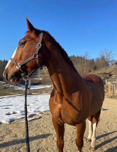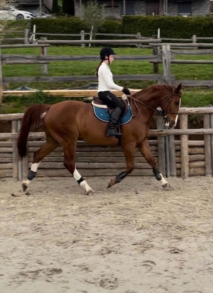 An exceptionally well-behaved Zangersheide gelding is available. He is currently working in a riding school and also greatly enjoys trail rides. In the past, he competed in show jumping up to 110 cm, but due to an injury he is no longer suitable for show jumping competitions. However, he can still happily jump a small course. He is very well trained in dressage. He is easy and uncomplicated to handle, including loading onto a trailer, showering, and farrier work. He is for sale only to a very good home, as this horse means a lot to us. The reason for sale is moving abroad.