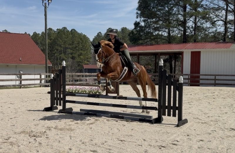 Falcon is jumping 2’6” courses and does have a lead change when asked. He is very brave and always willing to work. This horse is going to make someone a fantastic partner and is perfect for an ambitious junior, amateur or professional who really wants to take a horse all the way up the levels. Falcon has a ton of scope and athleticism. We see him thriving in the Jumper ring or as an Eventer. Falcon is very pleasant to ride. He goes on the bit nicely, moves off of aids great and gives his rider a great feeling over fences. He will always get his rider to the other side and has jumped fillers without hesitation. He has more go than whoah, but listens to aids very well.. Suitable for a rider who has an educated seat, leg and hands. He is very easy to hack and does well alone or with others. He has been schooled off property in Europe. USA show career will start this summer and price will increase with experience. Great x-rays on file. Richmond, VA - UTD on everything.