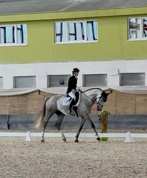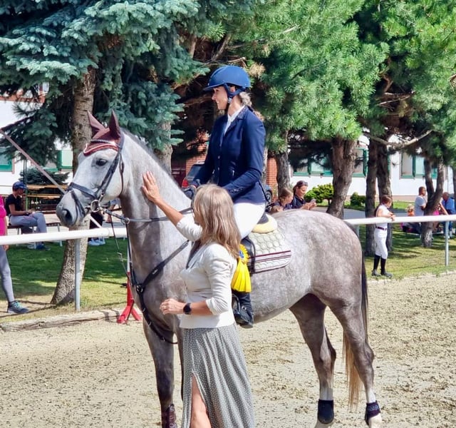 Video: https://youtu.be/AiAG3gqx4dg?si=KRYJAJqS7RK-w_A2 Gelding del 2021 di 1,76 m, by Griseldi È molto facile da cavalcare, con trotto fluido e galoppo facile. Di temperamento calmo, non spaventa! Esegue facilmente i cambi di galoppo. Ha un buon carattere anche per cavalieri di livello amatoriale o junior! Affidabile e piacevole sotto la sella. È attento, evita errori e salta con stile. Ha partecipato anche a poche gare di dressage. Il suo temperamento stabile e il salto piacevole lo rendono ideale per le classi di Equitation. È facile da gestire sotto ogni aspetto, educato e senza difetti di carattere. Per ulteriori informazioni e video, non esitate a contattarmi in privato o tramite wa.me/420733736574