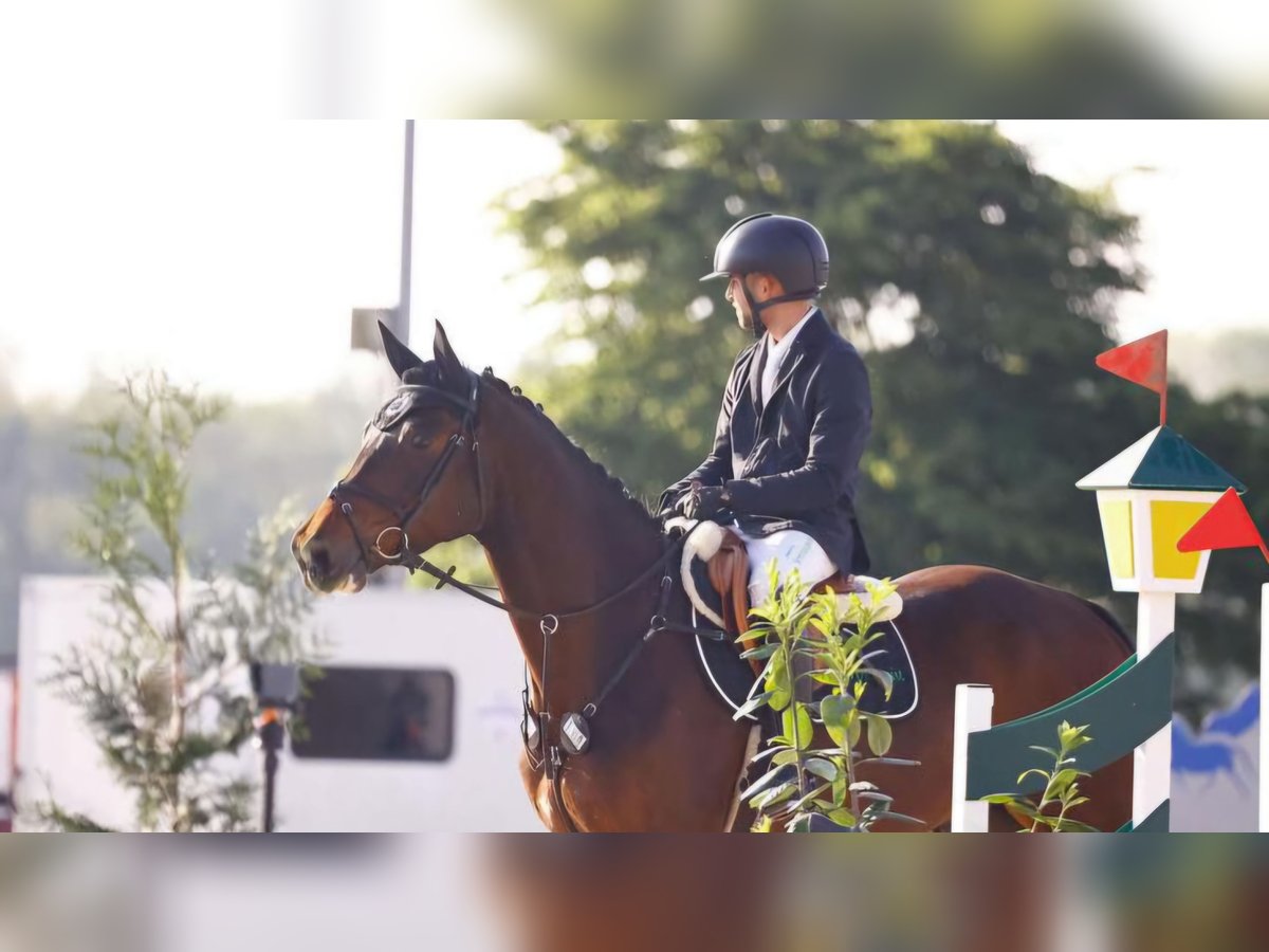 Zum Verkauf steht ein jetzt 5 jähriger brauner Wallach mit Zangersheider Papier. Abstammungsgemäß zeigt er einen überdurchschnittlichen Sprungablauf und konnte sich schon mehrfach in Springpferdeprüfungen mit Noten bis 8.4 platzieren. Er ist ein ruhiges Pferd welches immer den Überblick behält und im Parcours trotzdem volle Leistung bringt und zu überzeugen weiß. Er ist bis jetzt nicht beschlagen. Kennt täglichen Auslauf (Weide/Paddock) sowie Führmaschine. Fährt gerne Anhänger und lkw, lässt sich alleine Verladen. Röntgenbilder ohne Befund liegen vor. Er ist ebenfalls interessant als Hunter. Weitere Infos/Videos gerne über WhatsApp 0151 61523331