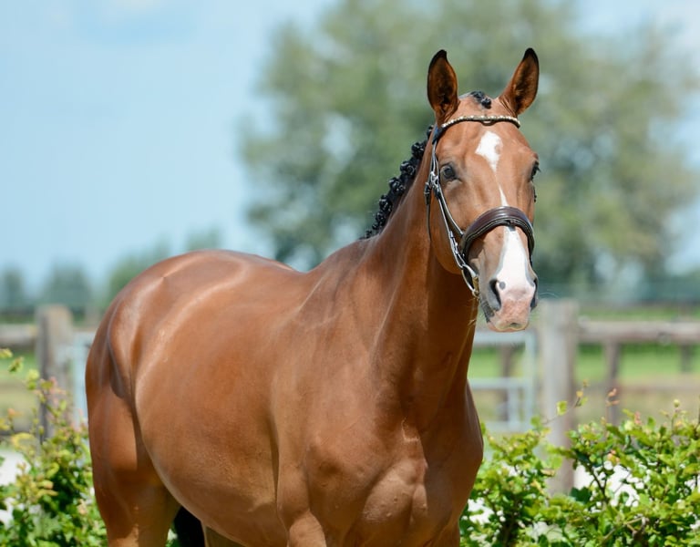 Cloud van de Zietfort Z is a sturdy, large gelding standing 1.74 meters tall. Born in 2021, he is currently four years old. Cloud has a cheerful and affectionate personality and is incredibly sweet. He boasts striking looks with his three tall white legs. This gelding joined us at the stable as a three-year-old and enjoyed a year in the young horse paddock before we began training him. The sport lineage of this horse comes from his grandmother Vupina. She produced Bon Coeur, who has offspring including Fiarabo (1.60m jumping), Interessant van de Zietfort (1.50m jumping), and Jolet van de Zietfort (1.45m jumping). Cloud van de Zietfort Z is ridden four times a week, combining dressage work and jumping. He is easy to ride and quite well-behaved. During jumping, he maintains a consistent pace and does not tend to rush, providing the rider with a steady feeling. He can change leads left and right over the poles but finds parcours jumping a bit challenging at this stage. He is best suited for an amateur rider who is willing to continue working with him. We also believe he would enjoy hacking out in the forest and could potentially make a lovely hunt horse. This horse is definitely suitable for a slightly taller and more experienced rider. In September 2023, he was given a clean radiological inspection, including his neck and back. The X-ray images and report are available upon request via email.