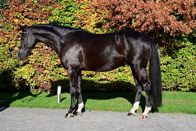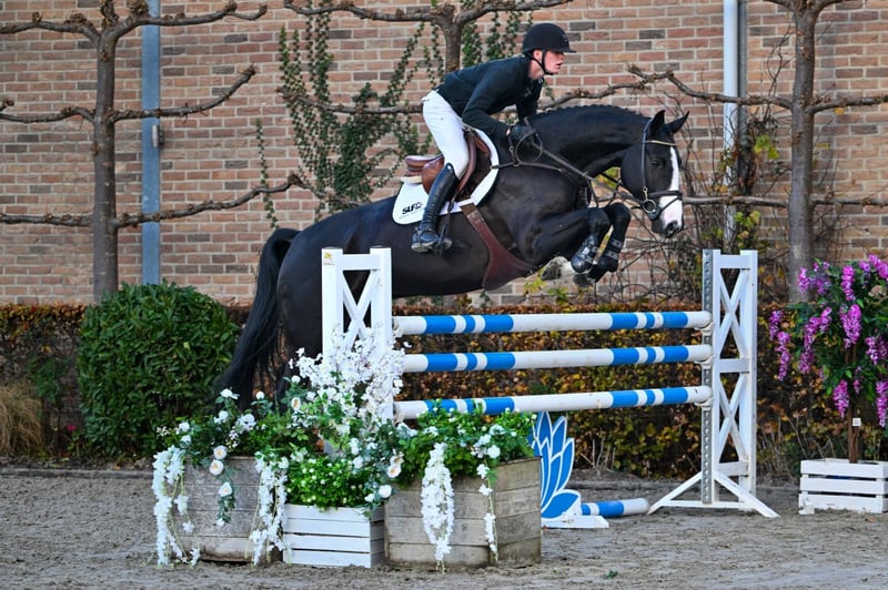 Comfort and Scope This six-year-old black gelding by Nixon van ’t Meulenhof, out of a Lupicor – Haarlem dam line, immediately stands out thanks to his striking color, modern type, and athletic expression. He descends from a highly successful family that has already produced several 1.50m and 1.60m horses, including Cosmea Z, APG Everlasting Love (Diego Perez Bilbao), Night Flight (Karim Elzoghby), Upsula (Francisco Moura), and various other notable sport horses. What catches the eye immediately with Never Walk Alone is his conformation and the quality he shows in his movement. He moves with suppleness, balance, and natural carriage — traits that make him a very comfortable and pleasant horse to ride. Over the fences, he confirms his class. His consistent and correct technique is a major asset: he always jumps in the same, reliable manner, with good shape and awareness. As the jumps increase, he develops noticeable power and clearly shows his scope. For an ambitious rider looking to bring a horse up to a higher level, Never Walk Alone offers a rare combination of comfort, quality, and potential. In the case of direct export to non-EU countries, VAT is no longer applicable (21% becomes 0%). If the export is delayed (but happens as soon as possible), the VAT will be refunded after we have received the official export document (which is drawn up by customs).