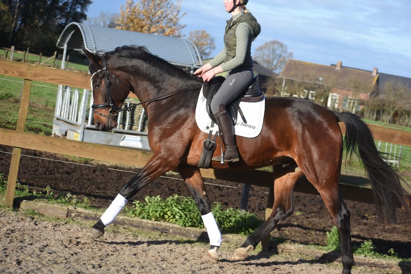 If you look at the particularly expressive head of Harley vd Kapel Z, you immediately know: this horse has a heart of gold. It’s as if you can see his soul. He was born on May 4, 2020, and stands approximately 16.1 hh. If you look closely at the photos, you’ll notice that he is gazing at his rider: “Am I doing it right?” Harley is a real people-pleaser. An incredibly sweet and kind horse, one in a thousand. He will never intentionally hurt you. We were able to take over Harley immediately from his breeder. He is well-trained and we consider him suitable for multiple disciplines. He is even calm enough for recreational riding here: on the road, in the trailer, in handling, the walk-in horse walker at the stable, and in the pasture. With guidance, we believe he would also be suitable for a beginner. Harley has a good pedigree: Heartbeat Z x Happy Wind d’Hof Ten Bos x Gurioso x Principaal. He comes with a recent clinical examination report, including blood tests, and a radiological report, all without any remarks. Harley is also completely free of (stable) faults. A horse of a thousand! Not a bargain purchase. Price upon request.
