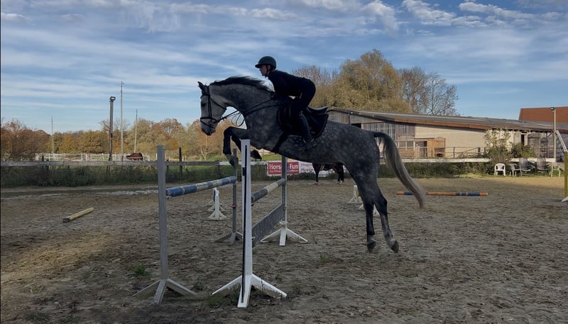 Zum Verkauf steht ein 6-jähriger Zangersheider Wallach, der durch seine Qualität und sein Erscheinungsbild überzeugt. Der 1,75m große, elegante Apfelschimmel besticht durch sein sehr freundliches und ausgeglichenes Wesen. Sein Schwerpunkt liegt im Springen, wo er sein Talent unter Beweis stellt. Der Wallach ist gut ausgebildet und zeigt großes Potenzial für den hohen Turniersport. Am Sprung zeigt er sich als sehr zuverlässig, springt aus jeder Lebenslage und parkt nicht. Er lief dieses Jahr seine erste Turniersaison und konnte sich mehrfach A platzieren und auch gewinnen. Ebenfalls konnte er sich direkt in seinem ersten L-Springen mit einer Note von 7,8 platzieren. Bei Interesse oder für weitere Informationen stehe ich ihnen gerne zur Verfügung. Videos können auf Anfrage ebenfalls geschickt werden. Um Reittourismus zu vermeiden, nehmen wir für das Probereiten 20€, was bei einem späteren Kauf selbstverständlich verrechnet wird.