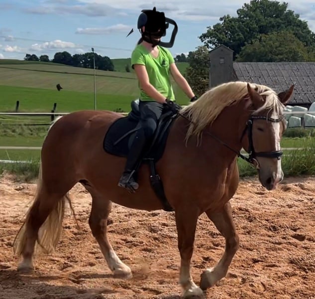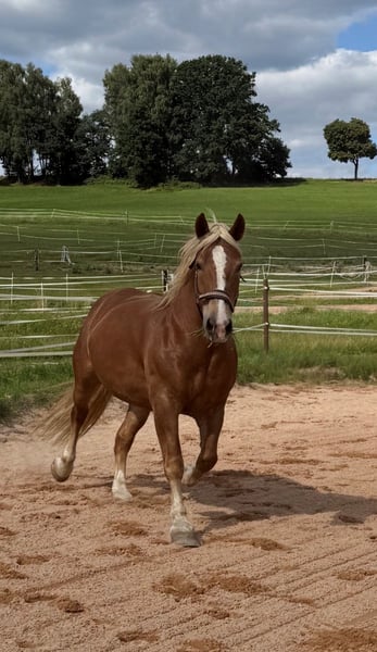 Süddeutsches Kaltblut – Charmante Freizeitstute Diese wunderschöne Süddeutsche Kaltblut-Stute wurde im Jahr 2015 geboren und besticht durch ihr freundliches Wesen und ihre beeindruckende Erscheinung. Mit ihrem eleganten Fuchs-Fell und einer Größe von 165 cm ist sie sowohl im Gelände als auch in der Freizeitgestaltung eine zuverlässige Begleiterin. Die Stute ist gut geritten und zeigt sich im Umgang äußerst freundlich und gelassen. Sie verfügt über eine solide Grundausbildung und ist sowohl für den Freizeitbereich als auch für leichte Dressur geeignet. Dank ihres ausgeglichenen Temperaments ist sie ideal für Reiter, die eine ruhige und verlässliche Partnerin suchen. Sie ist gesund, regelmäßig entwurmt und hat stets eine gepflegte Erscheinung. Diese charmante Kaltblut-Stute ist bereit, ihren neuen Besitzer in vielfältigen Freizeitaktivitäten zu begleiten und zu begeistern. Ein echtes Herzstück für alle, die Wert auf ein zuverlässiges und charakterstarkes Pferd legen.