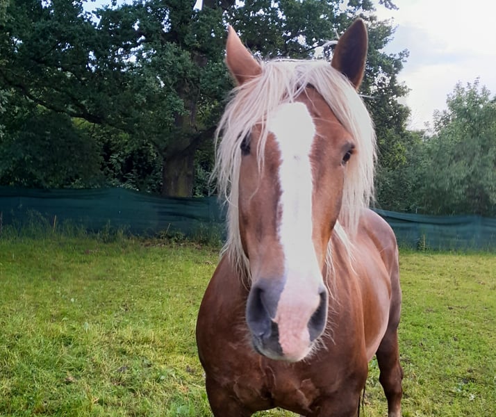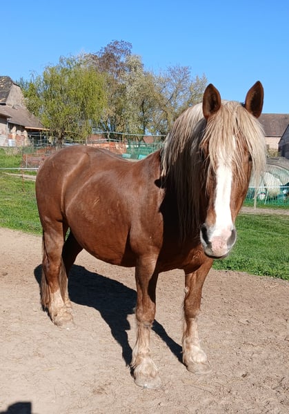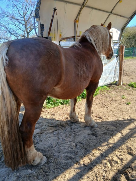 The mare (Edelweißbrand) is being offered for sale due to a reduction in herd size for health reasons on my part. Anne is 16.1 hh, a dark chestnut born in 2010. She has had limited leisure riding experience, as she was primarily used as a driving horse, so with some training, this should not be an issue. She is double-driven, but has been standing still recently due to my illness. She is very friendly, affectionate, healthy, allergy-free, does not bite or kick, and easily accepts all hoof handling. She has no problem with shoeing and loads calmly; there have been no issues with her so far. In recent months, she has not been worked regularly and will likely need some time to settle in. This is not an emergency sale, but it is better for the horse than remaining unused here. Serious inquiries are welcome.