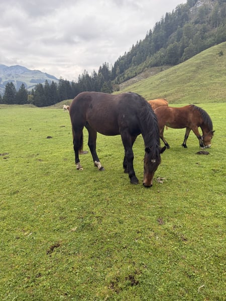 South German Cold Blood – Black-Brown Mare, born 2024 For sale is a beautiful South German Cold Blood mare, born in 2024. She is accustomed to trailer loading. Currently, she is on the mountain pasture in a robust herd with peers. Regularly dewormed and has already been introduced to the blacksmith. As a foal, she had two teeth removed due to an accident, but this has not affected her in any way. She may grow with the teeth changing! X-ray images are available. Sire: Rauris Dam: Grimaldi S x Nussdorf Both parents are PSSM n/n. If you are interested or need more information, please feel free to contact me. Viewing by appointment is possible.