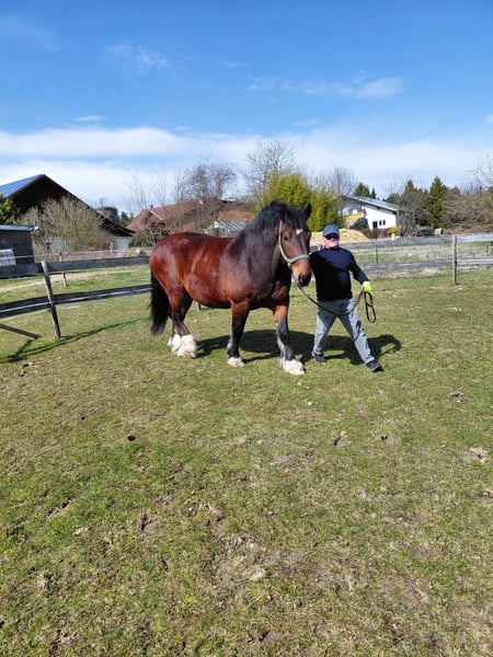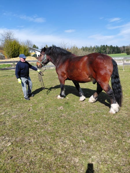Wir verkaufen aus Altersgründen unseren Süddeutschen Kaltblut Wallach, er wurde unregelmäßig zweispännig gefahren und am Boden gearbeitet. Er wurde nicht geritten. Weitere Ausbildung empfohlen. Er befindet sich bei uns im Offen Stall mit unserer Stute und einem Pony. Er ist geimpft. Wir wünschen uns für ihn einen liebevollen Endplatz.
