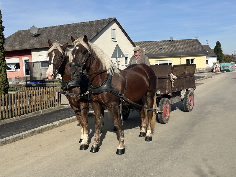 Hier sehen Sie zwei Wallache die sich schon super vernünftig und gelassen an der Kutsche zeigen. Beide sind ein ,- zweispännig angefahren sowie im Gelände angeritten. Die zwei stehen momentan auf vier Eisen und sind beim Schmied super brav. Beide können auch einzeln erworben werden.
