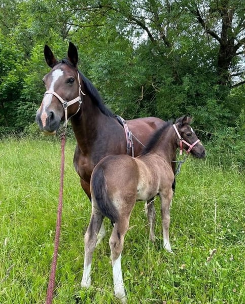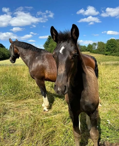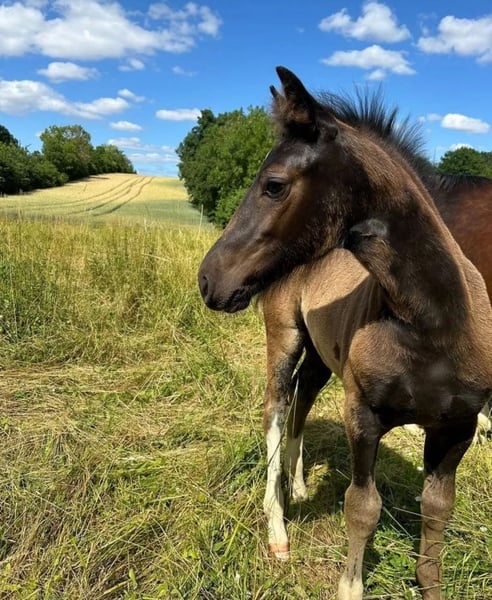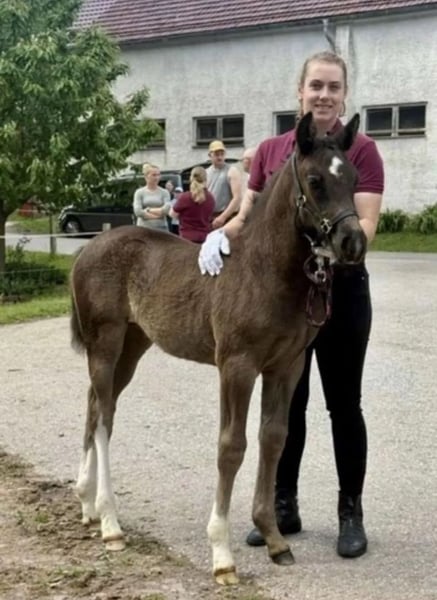 Aus unserer liebevollen Hobbyzucht haben wir uns nun doch entschieden, aufgrund Bestandsreduzierung, unsere im letzten Jahr geborene Schwere Warmblut Stute \"Glanzstück\" abzugeben. Selbstverständlich besitzt sie volles Papier & kennt das Fohlen ABC bereits vollständig. Sie überzeugt mit ihrem einwandfreien & absoluten liebevollen Charakter, was uns den Verkauf wirklich schwer macht. Geboren am 23.04.2025 Rappe Letztes Jahr erhielt sie ihre Fohlenprämie zur Fohlenschau. Züchterrisch sehr interessant, durch ihre alten Linien im Pedigree. Jedoch können wir sie uns auch sehr gut als Damen- & Familien Freizeitreit- & Fahrpferd vorstellen. Akuell: Bild 10 Mutter: Gundula von Dornburg (MV Volontär) (vorletztes Bild) Vater: Veltin (letztes Bild) Aktuelle Bilder gern auf Anfrage! 015146450835 Standort: 37339 Nähe Worbis