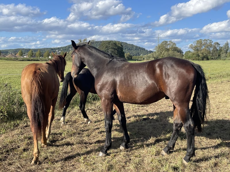 **Verkaufsanzeige: Schweres Warmblut Stute** Wir bieten eine wunderschöne, schwere Warmblut-Stute zum Verkauf an. - Geburtsjahr: 2022 - Farbe: Brauner - Stockmaßgeschätzt: 165 cm - Eignung: Fahren - Ausbildungsstand: roh Diese charakterstarke, wüchsige Stute zeigt sich bereits jetzt ausgeglichen und nervenstark im täglichen Umgang. Beste Vorraussetzungen um einmal sicher vorm Wagen zu gehen. Die Stute ist gut sozialisiert und hat einen freundlichen Umgang mit Menschen und anderen Pferden. Sie ist im Umgang brav und lässt sich problemlos händeln. Weiterhin ist bei Interesse noch ein Vollbruder geb. 2023 zu verkaufen. Der junge Wallach ist auf den letzten beiden Bildern zu sehen und wäre die perfekte Ergänzung für ein zukünftiges Passgespann. Für weitere Informationen oder zur Vereinbarung eines Besichtigungstermins freuen wir uns über Ihre Nachricht!