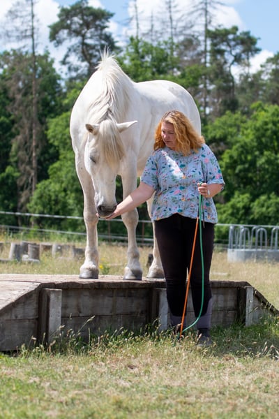 Zum Verkauf steht ein 17 jähriger schwerer Warmblut Wallach. Cyprys ist 1,64cm groß, Barhufer und ein Gewichtsträger. Er hat eine Ausbildung im Horsemanship, wird Dressurmäßig (A Niveau) aus dem Sattel und vom Boden gearbeitet. Er nimmt gern an der Stangengymnastik teil und macht auch gerne mal einen kleinen Sprung. Cyprys kennt es mit oder ohne Gebiss geritten zu werden. Auch das Reiten mit dem Halsring kennt er und er liebt Trailhindernisse, die er auch ohne Halfter und Seil mit seinem Menschen bewältigt. Im Gelände geht er in der Gruppe an jeder Stelle und gibt unsicheren Pferden Sicherheit. Auch allein ist er im Gelände sehr gechillt. Cyprys steht bei mir in Robusthaltung im Offenstall, im Sommer mit Wiese. Boxenhaltung mit tagsüber Paddock kennt er auch. Cyprys ist kein Pferd für Anfänger, unsichere Menschen oder Kinder. Er ist sehr stark in der Kommunikation und braucht einen sicheren Menschen an seiner Seite. Ich nehme mir gern Zeit, damit du Cyprys ausgiebig kennenlernen und auch Probereiten kannst. Dafür erlaube ich mir 30€ zu nehmen, die beim Kauf natürlich verrechnet werden. Wenn du Interesse an Cyprys hast, freue ich mich über eine kurze Vorstellung von dir und der zukünftigen Haltungsform. Ich bin an einem guten Zuhause für Cyprys interessiert und verkaufe nicht an Händler oder Menschen, wo ich den Eindruck habe, dass er es dort nicht gut haben wird.