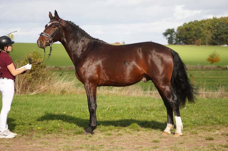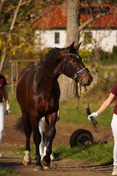 Na zlecenie hodowcy oferujemy ciężkiego konia rasy Warmblood. Został przygotowany do wstępnej selekcji na ogierów głównych dla koni ciężkich ras Warmblood. Jest potomkiem prestiżowej matki Elisha, nagrodzonej tytułem państwowej prymuski, pochodzącej od Urfürsta, oraz ojca Elgado, również konia ciężkiego typu. Potrafi poruszać się w kłusie z rytmem i dużą jakością, ma solidny, energiczny chód oraz piękną, pociągniętą do góry galopadę. Estello cechuje się ujmującym charakterem i jest spokojny w obsłudze, dlatego został już przetestowany z obciążeniem jeźdźca. W grudniu został zaziębiony. Ze względu na pewne zachowania w czasie wolnym, oferowany jest w atrakcyjnej cenie. Priorytet ma miejsce, nie cena. Więcej informacji chętnie udzielę w wiadomości.