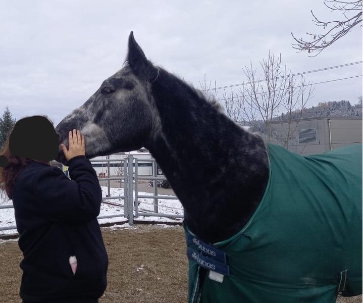 Schweren Herzens zu verkaufen aufgrund Platz- und Zeitmangel unser ROMEO, ein Schweres Warmblut (Pole), Wallach, 5-jährig, Rappschimmel mit sehr liebevollem und zutraulichem sowie zuverlässigem Charakter und angenehmes Temperament mit schöner Halsung, Freizeit englisch geritten und zweispännig gefahren (Ausbildung im Nationalgestüt in Bern), verkehrs- und geländesicher, verlade- und schmiedefromm, beschlagen, entwurmt, geimpft und gechippt. Guter Züger mit starkem Schritt und schöner Haltung. Ein schickes, auffälliges Pferd im Aussehen durch seine spezielle Farbe, aber dennoch sehr angenehm und lieb im Umgang. Ein Blickfang und ein Liebhaber-Pferd. Gerne kann es in Willisau LU besucht werden.