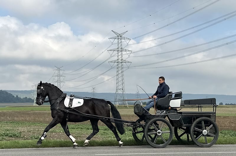 Great and experienced gelding who has been driven in one to six horses. He has already participated in parades and weddings, showing himself to be very sensible and well-behaved. In addition, he is ridden both in the field and in the arena.