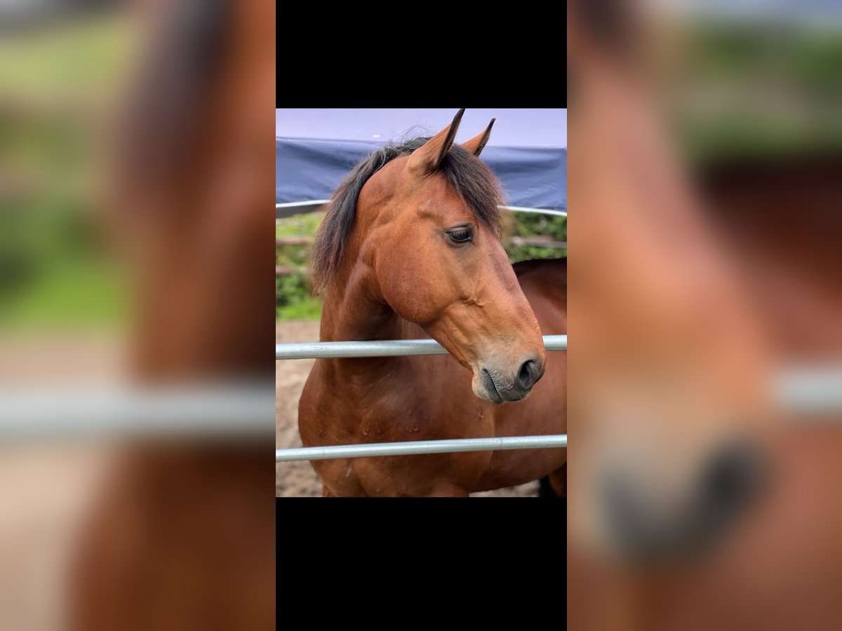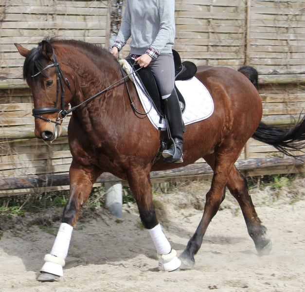 Schweren Herzens suchen wir ein liebevolles Zuhause für unseren 7-jährigen rumänischen Wallach (162 cm). Idefix ist vor zwei Jahren als Familienpferd bei uns eingezogen. Leider müssen wir uns eingestehen, dass seine vorherige Ausbildung offensichtlich nicht bedürfnisgerecht erfolgt ist und wir weder über die notwendige Zeit noch über die erforderliche Erfahrung verfügen, um dies entsprechend aufzuarbeiten. Derzeit wird Idefix von einer Amateurreiterin am Boden gearbeitet und geritten und entwickelt sich zunehmend zu einem tollen Freizeitpartner, der sich einen erfahrenen erwachsenen Reiter für seine weitere Ausbildung wünscht. Er ist mit drei soliden Grundgangarten ausgestattet, leicht in der Hand, neigt bei Unsicherheiten jedoch dazu, selbst Entscheidungen zu treffen. Daran sollte zukünftig definitiv weitergearbeitet werden. In der Herde ist er gut verträglich und verspielt. Altersbedingt profitiert er von einem souveränen Herdenchef. Da er Stuten gegenüber sehr charmant ist, wünschen wir uns für ihn eine Wallachgruppe. Aktuell steht er tagsüber auf dem Paddock bzw. der Weide und nachts in der Box. Bei entsprechendem Bewegungs- und Futterangebot ist jedoch auch eine Offenstall- oder robuste Weidehaltung denkbar. Hufschmied- und Tierarzttermine sind kein Problem, wobei er Letzteres bisher nur vom Impfen und Zähne machen kennt. Eine Ankaufsuntersuchung liegt derzeit noch nicht vor, kann vom Käufer aber gern durchgeführt werden. Bei Interesse oder weiteren Fragen freuen wir uns über eine Nachricht. Der Preis ist VHB – uns ist ein passendes Zuhause wichtiger als der Preis.