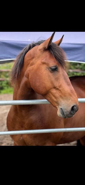 With a heavy heart, we are seeking a loving home for our 7-year-old Romanian gelding (approximately 16.1 hh). Idefix joined us two years ago as a family horse. Unfortunately, we have to admit that his previous training was apparently not tailored to his needs, and we lack the time and experience necessary to address this properly. Currently, Idefix is being ground-trained and ridden by an amateur rider and is gradually developing into a wonderful leisure partner. He would benefit from further training with an experienced adult rider. He is equipped with three solid basic gaits, is easy to handle, but tends to make his own decisions when uncertain. This is an area that should definitely be worked on in the future. He is well socialized within his herd and playful. Due to his age, he benefits from a confident herd leader. As he is very charming towards mares, we would prefer him to be kept in a gelding group. At the moment, he spends the day on the paddock or pasture and is stabled at night. With appropriate exercise and feed, turnout in a loose box or hardy pasture could also be considered. Farrier and veterinarian appointments are no problem; he has only been used to vaccinations and dental care so far. There is no current pre-purchase exam available, but the buyer is welcome to have one conducted. If you are interested or have further questions, please send us a message. The price is negotiable – for us, finding the right home is more important than the price.