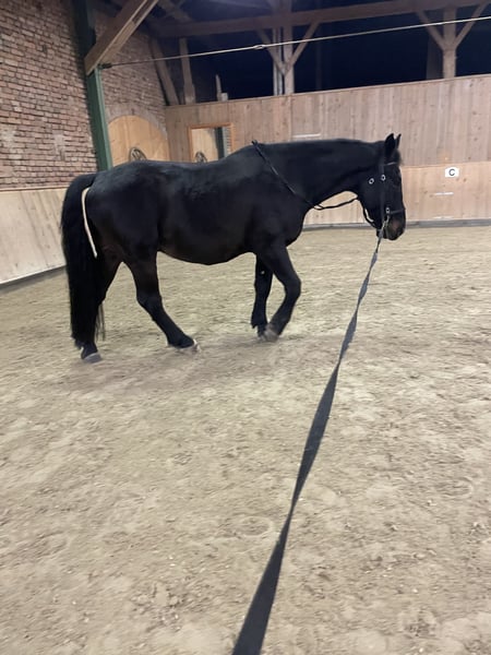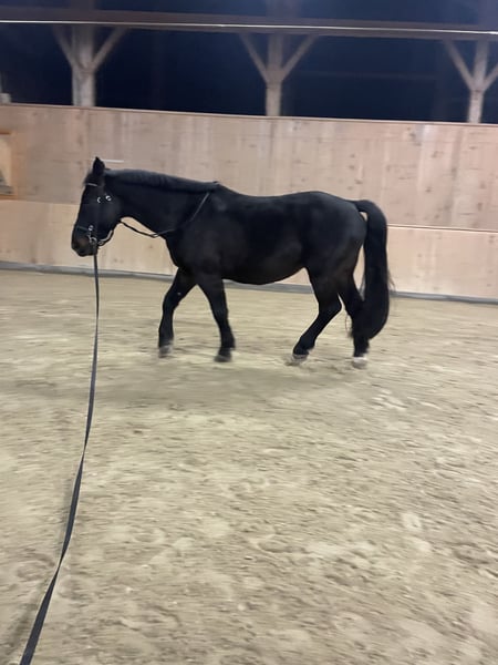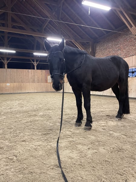 With a heavy heart, I am parting with my Raban. He was quite wild until he was five years old, but since then he has been with me, ridden, and professionally trained. Raban behaves very well in the dressage arena, showing motivation and focus. He can be ridden in all three gaits, masters all lateral movements, and moves very pleasantly "through the back." He responds very delicately to rider aids and wants to do everything correctly. However, Raban's favorite activity is hacking out in the field. In a group, he remains well-behaved and confident in every situation he encounters. Since late summer, he has also been more frequently ridden alone, remaining completely manageable in all gaits. Here, he can truly relax and enjoy himself. Overall, Raban is a very calm fellow. He is not a gaited or athletic horse, but stable, never ill, and simply very sweet. He loves cuddles, children, grooming, etc. No bad habits. Absolutely sound and farrier-friendly; can be loaded by a single person. Since I spend a lot of time in the field, Raban is currently four-shod but has excellent hooves and could also go barefoot. He is the rock in the group, the leader and at the same time a confident, calm presence. He is used to daily turnout, preferably in an active or open stable environment. He is not suitable for pure box stall housing. Teeth checked annually, vaccinated, dewormed. Raban is very dear to me and will only be rehomed if the fit is right.