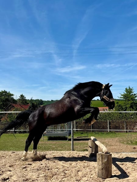 We would like to introduce the lovely Loriot: Loriot is an 8-year-old, well-built, heavier warmblood gelding standing at 171 cm. He has been professionally backed and is currently in training. He is also reliably driven single and pair, although he has not been hitched for some time. Both in the arena and in the field, he shows motivation and the necessary drive. Additionally, he has jumped a few times and remains very eager and willing to work here as well. He has no issues on the lunge and is always open to ground work. In work, he puts in a lot of effort but sometimes gets in his own way. He needs a handler with confidence and patience, which is also reflected in his behavior outdoors. Loriot is not suitable for solo rides and benefits from having another horse nearby that provides him with security. We are looking for the perfect home and partner for him so he can continue to develop and be supported appropriately. Currently, he is turned out 24/7 on pasture but is also used to stable life overnight or during bad weather. He is, of course, shoe- and loading-friendly. He has no vices, no known health issues, and is currently not shod. If interested, please send a brief introduction about yourself, including information about your stable and your plans with the horse. He is located in 06542. It is very important to us that Loriot finds a good home. This is not an emergency sale. We are not considering offers from riding schools or vaulting clubs. For a possible trial ride, we charge €25, which can be deducted from the purchase price if you decide to buy.