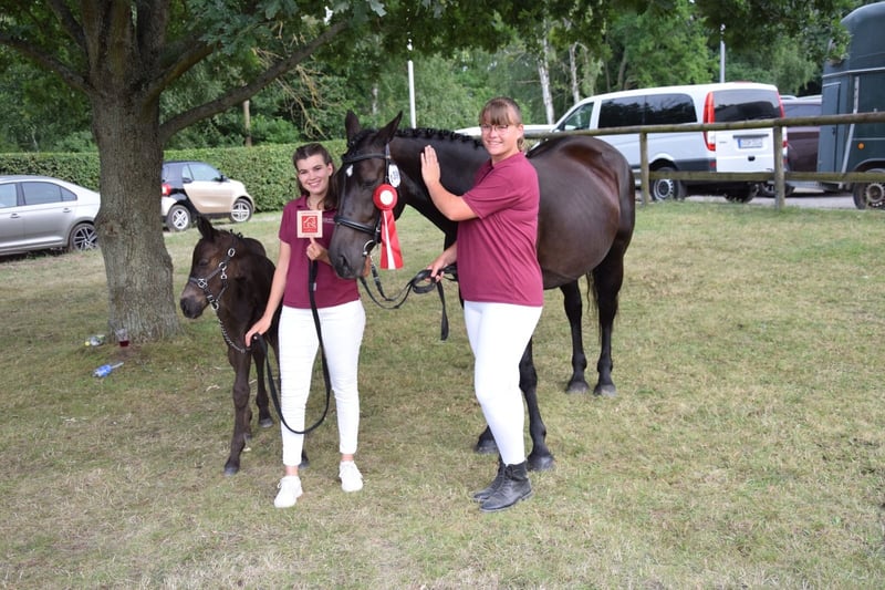Unser diesjähriger Youngster FIERO begeistert durch sein Erscheinungsbild, seine Ausstrahlung und seinen Charakter gleichermaßen. Er wurde im Typ mit 9,0 bewertet und zum Fohlenchampionat zugelassen, das er – trotz seines jungen Alters – mit Bravour bestanden hat. Fiero zeigt sich bei uns als äußerst verschmustes, ausgeglichenes und lernfreudiges Fohlen. Er beherrscht bereits das Fohlen-ABC, läuft sicher an der Hand, steht ruhig angebunden – auch ohne seine Mutter – und zeigt sich beim Schmied absolut brav. Auch das Verladen im Hänger meistert er mit Bravour und steht selbst auf längeren Strecken ruhig und entspannt neben seiner Mutter. ➡️ Abgabe nach dem Absetzen ab Dezember 2025. Herkunft & Qualität Vater: Friesius v. Frieder Ein typvoller, blutgeprägter Hengst aus der seltenen F-Linie der Normann-Abstammung, die für Adel, Ausdruck und Leistungsbereitschaft steht. Friesius absolvierte 2021 seine 50-Tage-Leistungsprüfung mit der Endnote 8,01 und überzeugt durch Leichtfüßigkeit, Aufrichtung und hervorragende Rittigkeit. Seine Abstammung vereint wertvolles Leistungserbe mit modernem Typ und außergewöhnlicher Präsenz. Muttervater: Loriot Ein Leistungshengst durch und durch – Bundeschampion 2019, Vize-Bundeschampion 2021 und Finalist der Weltmeisterschaften der jungen Fahrpferde. Er legte eine hervorragende Hengstleistungsprüfung mit 8,44 ab und zählt zu den bedeutendsten Vererbern der Rasse. Mit mehreren gekörten Söhnen, darunter Kör- und HLP-Sieger, sichert Loriot wertvolle Genetik und Typstärke für die Zukunft. Die Mutter, eine Verbandsprämienanwärterin, kann auf dem Hof besichtigt werden. Sie ist solide geritten und gefahren und wird im kommenden Jahr ihre Prüfung ablegen. Charakter & Entwicklung Fiero besticht durch sein ruhiges, ausgeglichenes Wesen und seine hohe Lernbereitschaft. Er ist ein Fohlen, das mit seiner Menschenbezogenheit und Gelassenheit jeden Tag Freude bereitet – ideal für Züchter, Fahrer oder Liebhaber des Schweren Warmbluts, die Wert auf Qualität und Charakter legen. Wichtiger Hinweis Dies ist kein Notverkauf. Wir möchten lediglich einem Liebhaber oder Züchter die Gelegenheit bieten, ein besonders vielversprechendes Hengstfohlen zu einem fairen Preis zu erwerben. Sollte sich nicht das passende Zuhause finden, bleibt Fiero selbstverständlich bei uns, wird altersgerecht gefördert und weiter ausgebildet – entsprechend wird dann auch sein Wert steigen. Kontakt: Romantikhof Seitenhain 0152 04188729 (gern per Nachricht oder Telefon) Besichtigungen nach Absprache jederzeit möglich. Aktuelle Bilder folgen in Kürze.