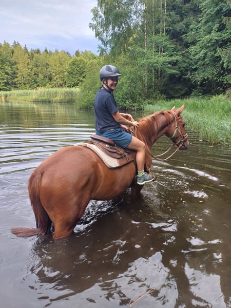 Sehr typvolles Sächsisches Warmblut vom Moritzburger Hengst Lilienstein. Er ist robust in Offenstallhaltung, in einer gemischten Herde aufgewachsen und lief als Fohlen beteits mit seiner Mutter an der Kutsche. Lio wurde sehr schonend und liebevoll gebisslos angeritten. Er läuft zuverlässig in allen 3 Grundgangarten im Gelände wird da auch von Jugendlichen geritten. Er hat ein sehr stabieles Fundament was ihn gut zum Gewichtsträger macht. Hufpflege,Hängerfahren,Tierarzt/Impfung selbstverständlich ohne Probleme. Der sanfte Riese ist sehr Menschenbezogen liebt Bodenarbeit, lange Geländeritte und genießt jede Art der Zuneigung. Wir wünschen uns für ihn eine stabiele Herde und Menschen mit viel Liebe zum Pferd.