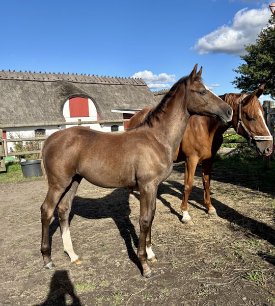 🌟 Gallardo’s Nera (Stute, geboren am 23. Mai 2025) Eine außergewöhnliche junge Stute mit einem wunderbaren Temperament, korrekter Konformation, kräftigen Beinen und drei ausdrucksvollen, elastischen Gängen. Nera ist Gallardos drittes Fohlen und setzt die herausragende Qualität und den Charakter der Linie deutlich fort. Ihre Mutter Gallardo wurde im Alter von 2,5 Jahren eingeritten und erwies sich als äußerst intelligent, lernwillig und leicht zu reiten. Sie hat bereits drei vielversprechende Fohlen hervorgebracht: - Super Trofeo (2022, von Asterix de Couleur) – verkauft bei der Elite Foal Auction 2022. Zeigt exzellente Springtechnik sowie bemerkenswerte Sorgfalt und Aufmerksamkeit beim Freispringen. - Superleggera (2023, von Asterix de Couleur) – zeigt die gleiche scharfe Intelligenz und auffälligen Springstil wie ihr Bruder. Die Großmutter Harmonie Hästak hat selbst erfolgreich bis zur Klasse M (1,40 m) geritten. Sie ist Vollschwester eines 1,50-m-Großpreis-Pferdes und hat mehrere Halbschwestern und -brüder, die bis zum Niveau der Mittleren und Höheren Klasse im Springen antreten. Harmonie hat auch Nachkommen bis zur Mittleren Klasse hervorgebracht, darunter Centenario, der im Finale der 6-Jährigen beim Falsterbo Horse Show platziert wurde und jetzt an Shane Sweetnam in Wellington verkauft ist. 📞 Für weitere Informationen und Videos kontaktieren Sie bitte +46 736 775 747. 🎥 Es sind auch Videos von Nerias Geschwistern und Großmutter verfügbar. Verpassen Sie nicht die Chance, eine zukünftige Springstars zu besitzen.