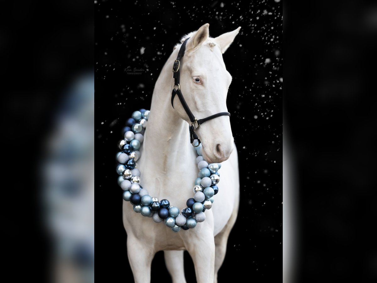A stunning 10-year-old Cremello gelding (approved stallion) is available for sale. He is a real eye-catcher with his rare color and expressive appearance. He impresses with his calm, well-balanced nature and high willingness to work. Whether jumping, dressage, or relaxed hacking, he consistently shows himself to be trainable, sensitive to aids, and always provides a pleasant riding experience. His versatility has already been demonstrated successfully in competition: winning up to 1.15 m in show jumping, multiple A**-level victories in dressage, and placing in A** in eventing. He was not further trained in dressage at competitions, as his rider had no ambitions in that discipline. However, at home, he was consistently trained up to M-level. He particularly excels in his typey appearance, rideability, and good basic gaits, with his expansive, rhythmical walk standing out. He makes a very good jump with solid scope, suitable for hunter classes, and is already M-level ready for competition, where he can be presented at any time. He does, however, require some confidence from his rider at that level. He also enjoys groundwork immensely. During lungeing with a halter, he responds very sensitively to aids and maintains a beautiful self-carriage. He would also be of interest to enthusiasts of classical dressage. In handling, he is straightforward: calm at the farrier and veterinarian, easy to load, relaxed in new environments, and during hacks. His friendly, open nature makes him a horse that quickly wins your heart. During the day, he is turned out with a herd of geldings on the pasture and stabled at night. We are only offering him into the very best, loving hands, as he means a great deal to us. For questions or to arrange a viewing, I am always available via WhatsApp!