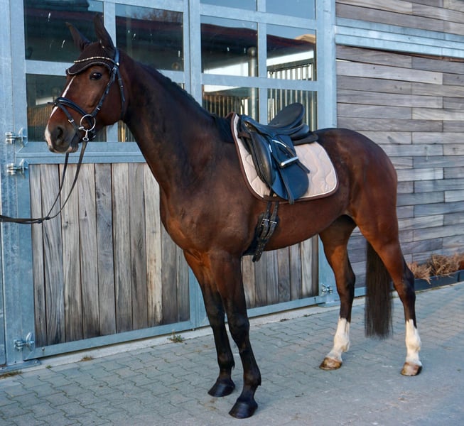 🦋 JIM 🦋 7 years old Approximately 1.60 m (16.1 hh) Healthy and well-behaved both on the ground and under saddle. His progeny also compete in jumping up to L level and in dressage at A level. Mainly ridden in the field. ✔️ Loadable without issues ✔️ Hacks out alone as well as in a group ✔️ Pleasant to handle daily ✔️ Gets along well with other horses and is accustomed to larger groups in the pasture A very good horse for leisure riders seeking a reliable partner with quality, character, and potential for further development. ⸻ 📞 Contact & Viewing Please inquire by phone: 📞 0341 / 98995223 Monday–Friday 09:00–18:00 Saturday 09:00–15:00 🚫 Closed on Sundays ⸻ 🐎 Trial riding 💶 €30 per horse (up to 2 riders) → credited towards purchase price 💶 Holidays: €50 Please cancel at least 24 hours before the appointment; otherwise, the fee will be charged. 💶 Demonstration by our trainers (without trial riding / groundwork etc.): €25 per horse ⸻ Purchase examinations can of course be carried out by your veterinarian or ours. We also gladly assist with transport to the new home. 🌐 www.deutsche-pferde-boerse.de Other interesting sale horses are available at our sales stable and on our website. Note: The height measurements are estimates provided by the seller and do not constitute guaranteed properties.