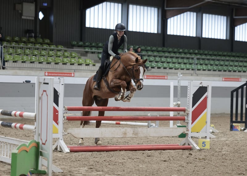 Zum Verkauf steht ein 13-jähriger Wallach von Furejev x Sterntänzer. Fabriano befindet sich seit 3-jährig in meinem Besitz und wurde schonend ausgebildet. In der letzten Saison konnte er A* Stilspringen mit Traumnoten von 8,4 und 8,7 für sich entscheiden und hat sich bis A** mit steigenden Anforderungen mehrfach platziert. Durch seine Optik und seinen tollen Sprungablauf ist er bisher immer ein starker Richterliebling gewesen. Im Training springt er bereits auf L Niveau und ist bereit für die nächste Saison. Dressurmäßig habe ich ihn über ein A Niveau nicht weiter gefördert, aber auch hier zeigt er sich clever und leistungsbereit. Allgemein ist Fabriano ein toller Allrounder, der im Händling ein absoluter Schatz ist. Er ist Schmiede- und verladefromm, verträglich in der Herde und geht auch gerne ausreiten oder auf den Geländeplatz. Aktuell ist er vorne beschlagen und Influenza/Tetanus geimpft. Ein Probereiten ist möglich, wofür ich - um Reittourismus zu vermeiden - 30€ berechne. Diese werden im Falle eines Kaufes selbstverständlich verrechnet.