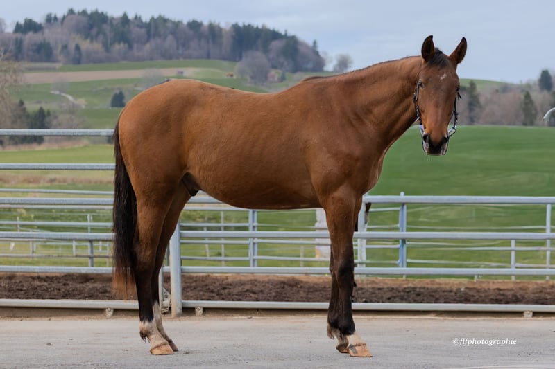 Zum Verkauf steht ein am 22.04.2024 geborener, äußerst typvoller, der in puncto Abstammung und Auftreten keine Wünsche offen lässt. Pedigree der Extraklasse Vater: Von Chacco IXE (v. Chacco Blue) – Er verkörpert die Kraft und das Springvermögen seines weltberühmten Vaters und gibt diese Leistungsbereitschaft direkt weiter. Mutter: Quantic (v. Quick Star) – Über den legendären Quick Star bringt sie Schnelligkeit, Reflexe und die nötige „Vorsicht“ am Sprung mit in die Anpaarung. Exterieur & Charakter Korrektes Fundament: Cuando besticht durch ein harmonisches Gebäude und eine bereits jetzt erkennbare Athletik. Bewegungsqualität: Drei sehr gute Grundgangarten, wobei besonders die Bergauf-Galoppade seine Springpferde-Qualitäten unterstreicht. Wesen: Er zeigt sich im Umgang dem Alter entsprechend neugierig, menschenbezogen und nervenstark. Er kennt das Fohlen-ABC und ist bestens sozialisiert. Fazit: Cuando ist eine Offerte für den anspruchsvollen Springreiter oder Züchter, der ein Nachwuchspferd mit internationalem Leistungsblut für die Zukunft sucht.