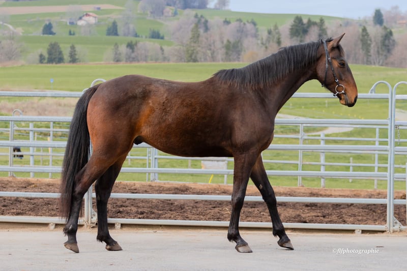 Sie suchen ein Nachwuchspferd mit internationalem Leistungsblut und einem Interieur aus Gold? Sawango (geb. 05.03.2023) Pedigree Sawango ist ein Sohn des Samy du Challois und führt mütterlicherseits das Blut des legendären Quick Star. Diese Kombination verspricht nicht nur die nötige Vorsicht und das Vermögen am Sprung, sondern auch die Intelligenz und Wendigkeit, die moderne Sportpferde auszeichnen. Charakter & Ausbildung Obwohl er noch roh ist, zeigt sich Sawango im täglichen Umgang als absoluter Musterschüler: Klar im Kopf: Er ist sehr aufmerksam und lernt extrem schnell. Kein Angsthase: Er begegnet neuen Situationen mutig und gelassen. Bestens vorbereitet: Er kennt das Putzen, ausgiebige Spaziergänge und läuft bereits souverän als Handpferd mit. Artgerechte Aufzucht Sawango durfte unter optimalen Bedingungen groß werden, was das Fundament für seine spätere Belastbarkeit legt: Sozialkompetenz: Aufgewachsen in einer großen Herde von ca. 20 Pferden (gemischt von jung bis alt). Trittsicherheit: Die Sommer verbrachte er auf den Bergweiden, was seine Balance perfekt geschult hat. Haltung: Im Winter kennt er den Wechsel zwischen täglichem Auslauf und der Box in der Nacht. Eckdaten auf einen Blick: Name: Sawango Abstammung: Samy du Challois x Quick Star Geburtsdatum: 05. März 2023 Status: Wallach, roh Besonderheiten: Sehr menschenbezogen, lernt extrem schnell, unerschrocken. Ein Juwel für Selbstausbilder, die Wert auf eine solide Aufzucht und ein klares Interieur legen. Er ist bereit, mit seinem neuen Besitzer die Welt zu entdecken